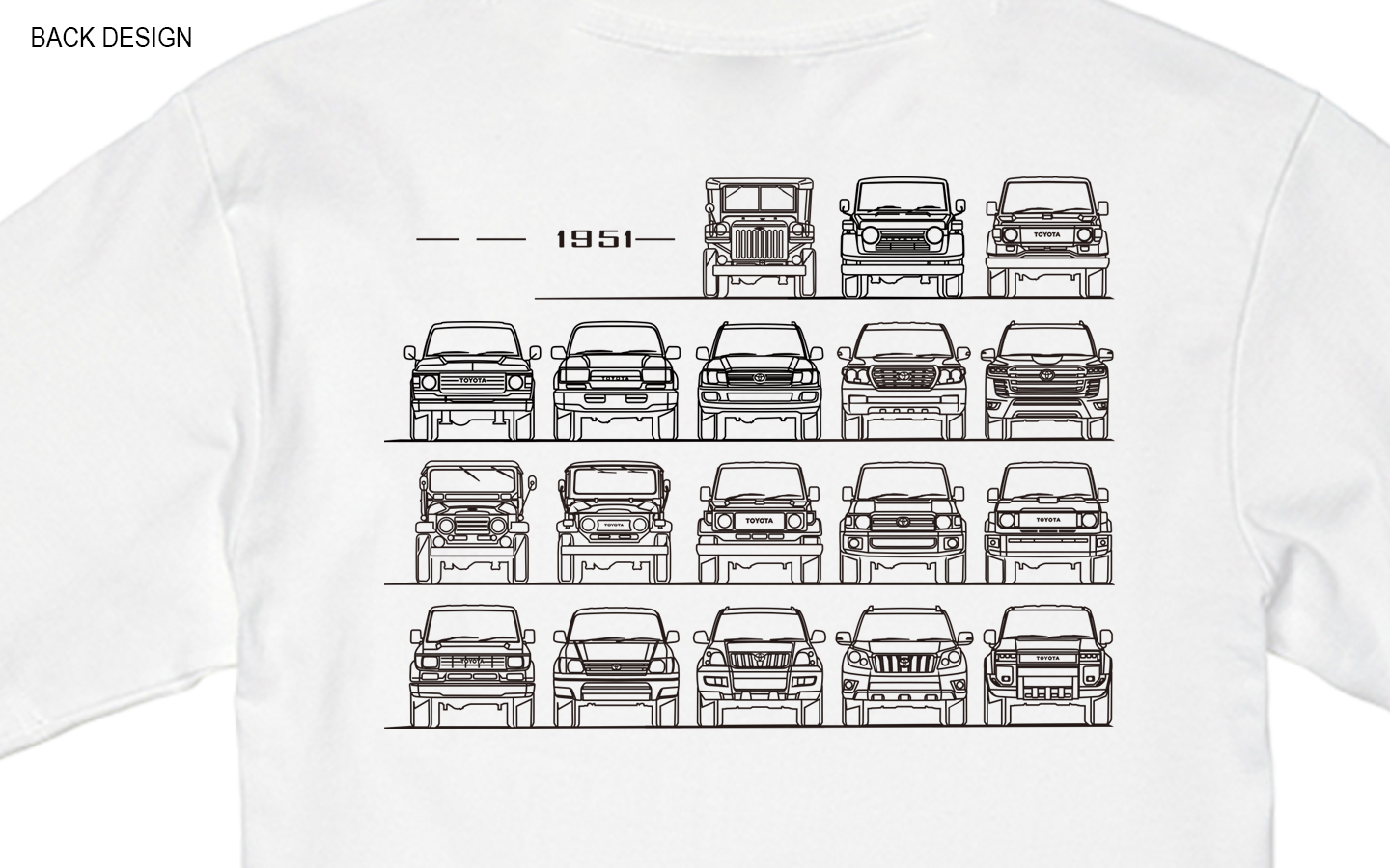 Design : T-shirt’s front Land Cruiser logo, Back has successive model.