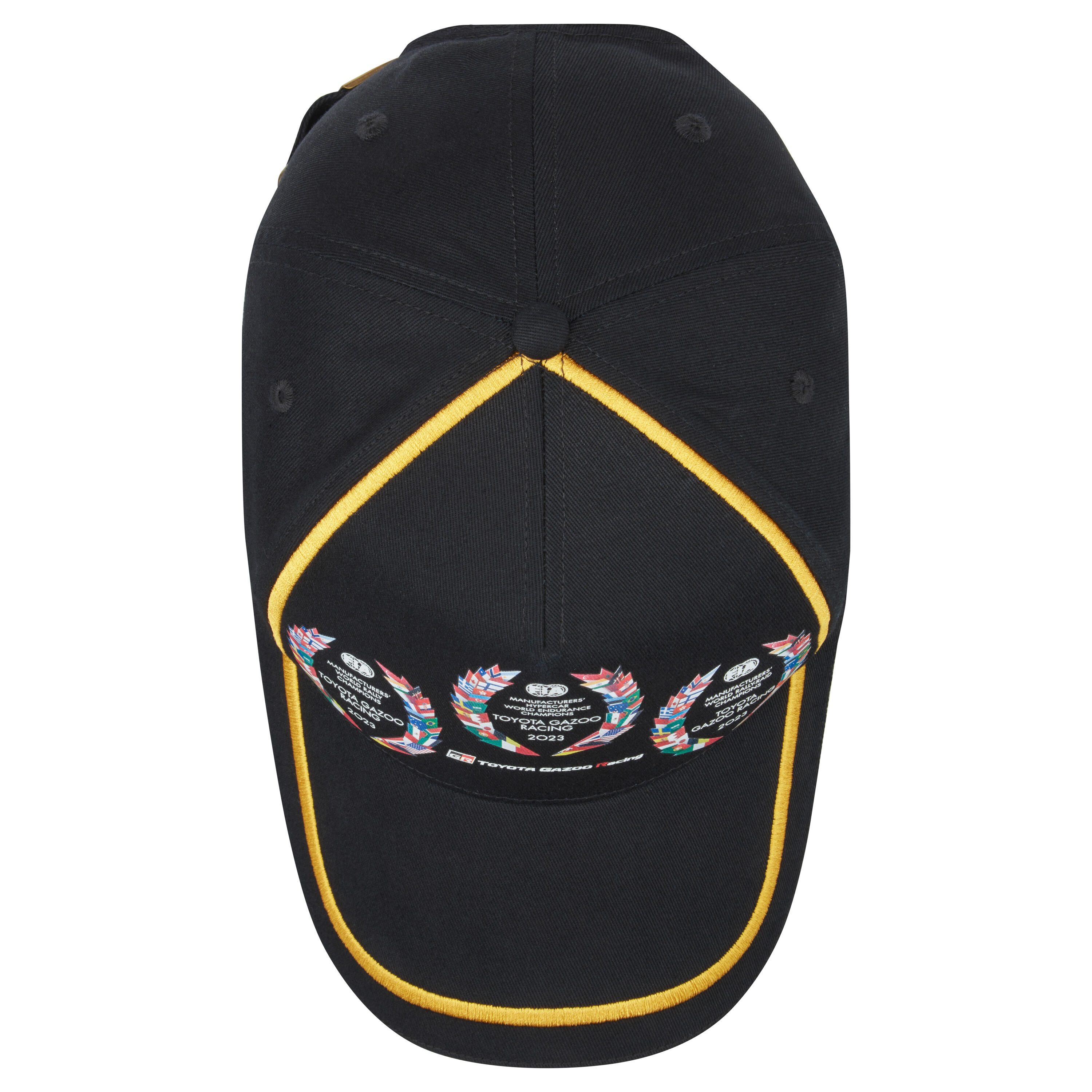 Celebrate TOYOTA GAZOO Racing's 2023 successes with this Triple Champions Cap, a memorabilia piece that highlights TGR winning three manufacturers titles in World Rally, World Hypercar Endurance and World Rally-Raid. The cap features gold pipe detailing surrounding the three winning laurels along with the TOYOTA GAZOO Racing logo on the front, silicone badge on the right, white peak edging and a golden buckle clip for an adjustable fit. One size caps are adjustable and have been designed to fit head circumference of between 22.5 inches 57cm and 23 inches 59cm.
