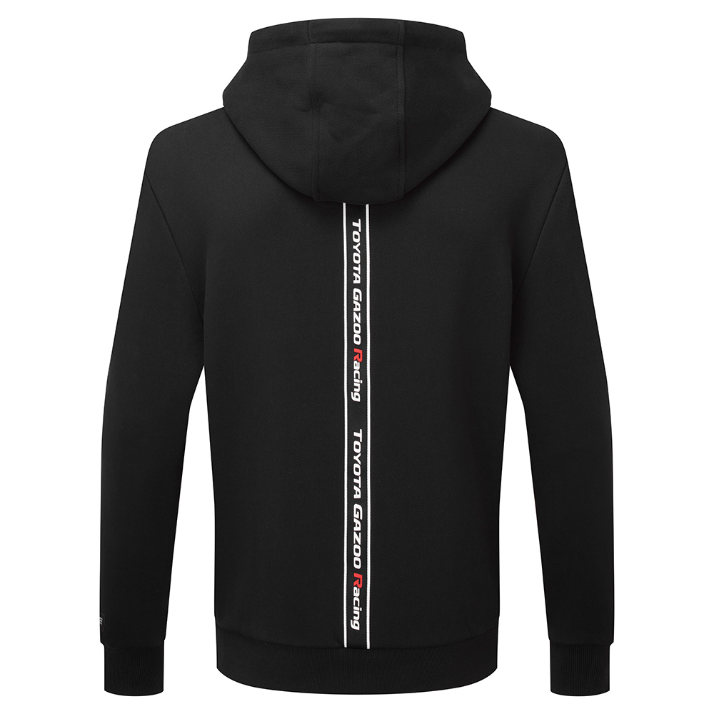 Our TOYOTA GR hoodie is crafted from 100% cotton, ensuring a sumptuously soft texture. Manufactured in diagonal raised fleece, for absolute comfort whilst being substantially hard-wearing. Key features include a front-facing rubberised GR logo, adjustable drawcords for the hood, TGR-branded tape lining both the interior of the hood and down the back. Finished off with ribbed hem and cuffs, kangaroo pocket, a GR label at the neck, and a subtler TGR logo adorning the left sleeve cuff.