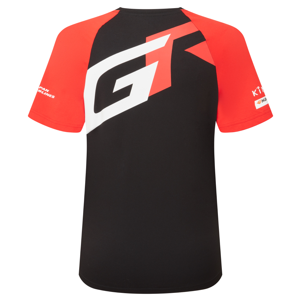 Show your unwavering support for the TOYOTA GAZOO Racing rally team with this stylish and feminine women's t-shirt. The distinctive GR print is displayed prominently on both sides, declaring your passion for motorsport. The flattering fitted waist and elegant lower neckline accentuate your silhouette, while the bold red shoulders and raglan sleeves add a touch of athletic flair. Featuring the official 2025 team and sponsor logos, you will feel like a true member of the team. Made with 60% recycled polyester, this t-shirt allows you to support both your favourite team and a more sustainable future. By diverting plastic from landfill, recycled polyester requires far fewer resources than that of new fibres and generates less CO2 emissions. The self-fabric black collar ensures all-day comfort, making it perfect for race days and everyday wear.
